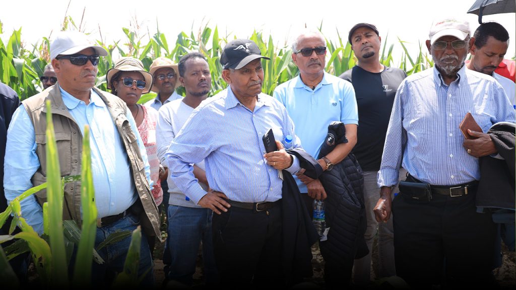 The Ethiopian Academy of Sciences conducted a field visit to the TELA maize demonstration plots at the Dhera site, managed by the Melkassa Agricultural Research Center. The event was jointly organized by the Biotech Maize Seed System (BMSS), the Ethiopian Society of Biotechnology (ESoB), and the Biotechnology and Emerging Technologies Institute (BETin).